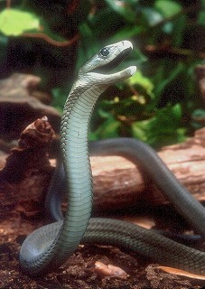 こちらの写真は、時速30kmで進み、木にも登れ、水の中もOKというブラックマンバ。