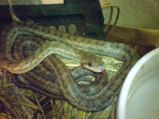 見にくいですけど、フタの下あたりにコロニジの幼蛇が写っています。